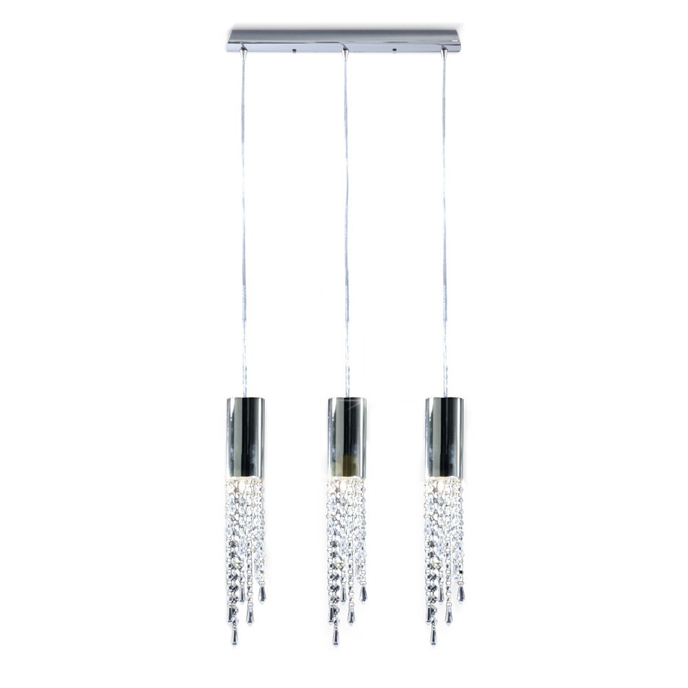 Equipado con 3 luces, este colgante ofrece una iluminación uniforme y eficiente, creando un ambiente cálido y acogedor. Su acabado en cromo aporta un brillo contemporáneo que complementa estilos decorativos modernos, minimalistas o industriales, añadiendo un toque de lujo discreto al entorno.